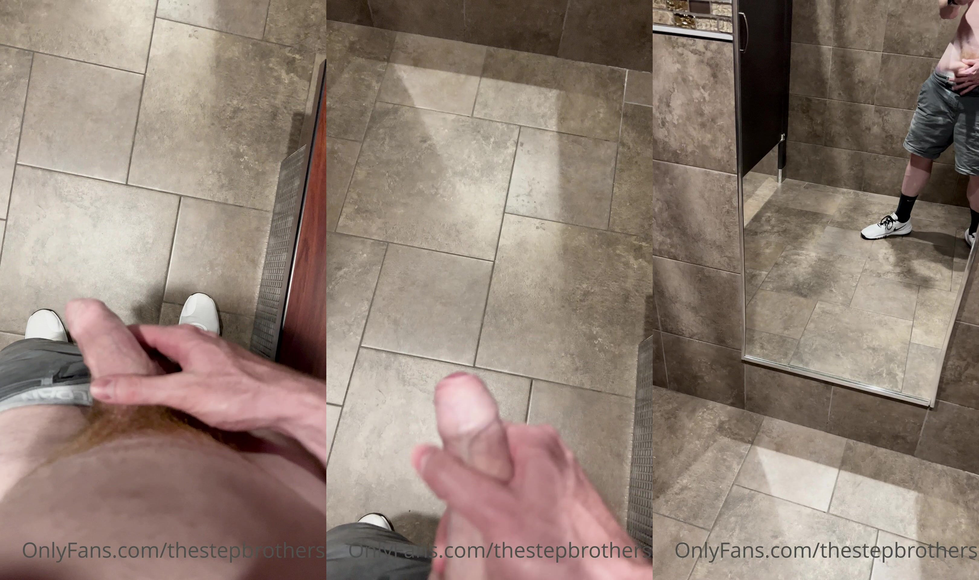 TheStepBrothers - Big bro shows his cock in the mirror in public bathroom - 48 secs - free gay porn
